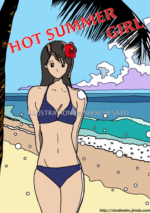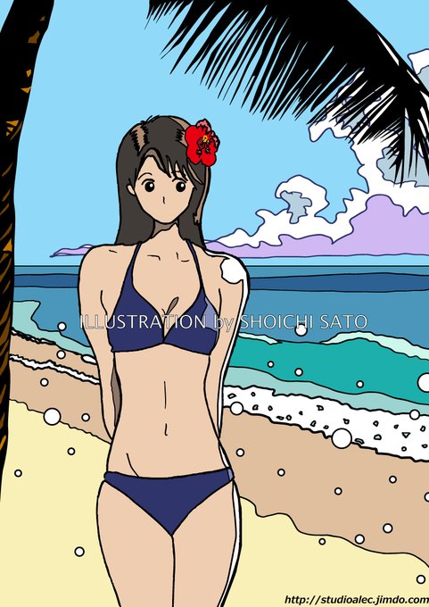 ちょいと原点回帰的なイラストを描いてみました♪ 元々デザイン要素の強いシュールなイラストから始まったのが私の画風だったりしますw #女子 #小麦色 #イラスト #絵師 #かわいい #女の子 #illustration #南国 #girl #art #ハイビスカス #水着 #海 #人物画 #ビキニ #入道雲 #女子高生 #日焼け