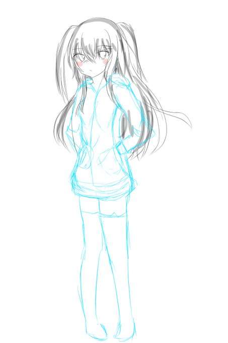 今日の進行 ・衣装の変更(コートとスカートをワンピース(?)に、フードとマフラーをローブに変更)全体的に露出が増えた? ・顔や髪の毛、体の微調整 ・髪の毛の色を金髪から白髪に変更→それに伴い衣装の色を白と黒メインに(キャラのイメージにあわせるため) そのうち消す