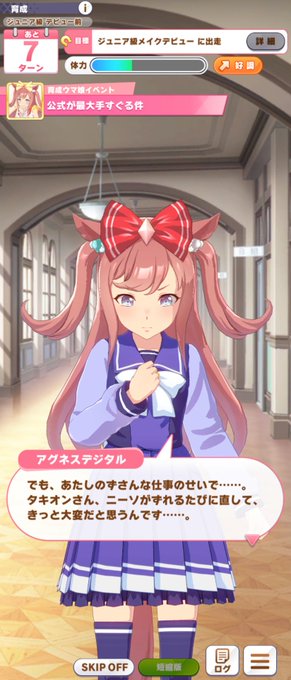 今日のアオハルは自分得メンバーでした。偶然頭撫で仲良しスクショが撮れたしタキオンは粒子になりかけている