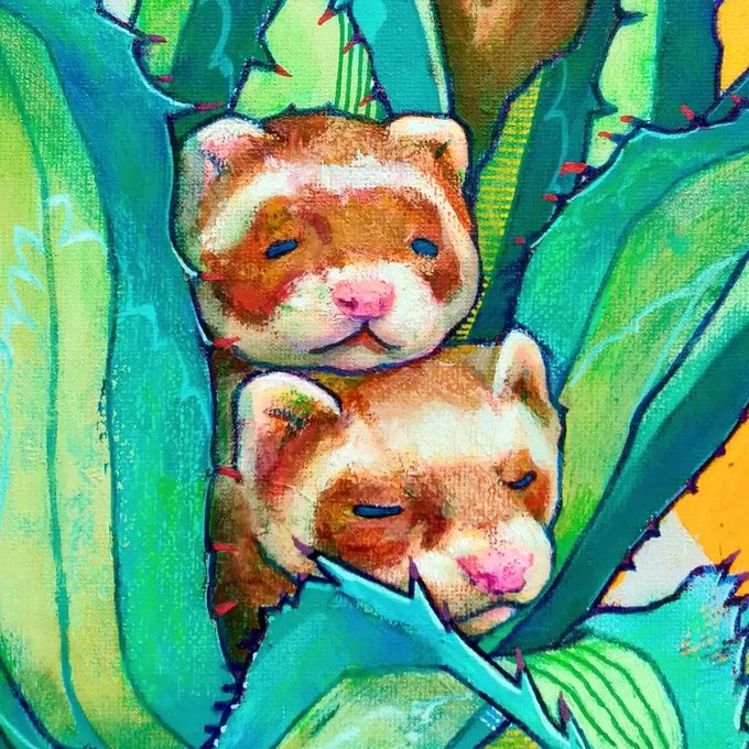 🎨 #STSN 🖌️ 作品紹介 2022.3.28 『ひと休み中のフェレットたちとアガベ』 🛒https://t.co/CpV7Sc1vxG #アートワーク #絵画 #絵 #アート作品 #絵画作品 #acrylicpainting #art #アートを飾る #アガベ #アガベ華厳 #動物 #ペット #フェレット #アンゴラフェレット #フェレット好きと繋がりたい