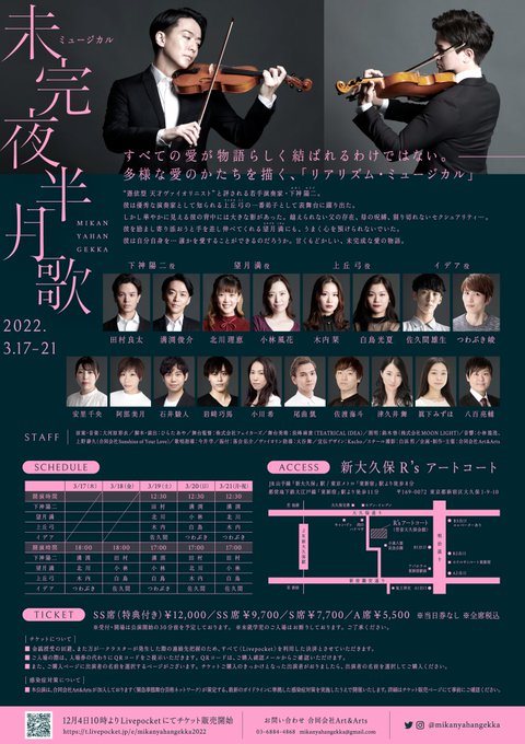 【出演情報】ミュージカル『#未完夜半月歌(みかんやはんげっか)』2022年3月17日木曜〜21日月祝@ 新大久保・R'sアートコート ▶︎溝渕俊介出演回▶︎
