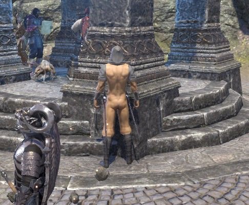 日本語版発売の3か月ほど前、ESOが64bitに対応した時のバグ画像 NPCやプレイヤーの服が透けて半裸や全裸になったり、モンヘル被ると頭が小さくなったり、NPCが突然ハゲになったりとすごい時代であった 自キャラ(女)をなんとか素っ裸にしようと試みたプレイヤーは数知れず