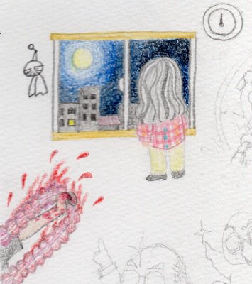 色鉛筆が届いたので大喜びでそこいらじゅうに散乱する紙切れに描きつけた落書に彩色してみたが…やっぱセンスねえ。センスねえよ。どうすんの、36色もあるのに。