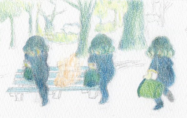 色塗り練習のため、自画像を色鉛筆でリメイク。メリハリがないなあ。夏だから涼しげにしようと思ってシャツの色を白っぽくしたのが失敗ね。普通に塗るとつまらないからなんでも青く塗ってゾンビみたいになっちゃうし。