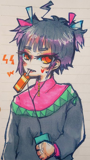中学の時のオリ子(2枚目)をささっと描いてみた( ˇωˇ ) 個人的に凄く好きな感じにできたので満足!!