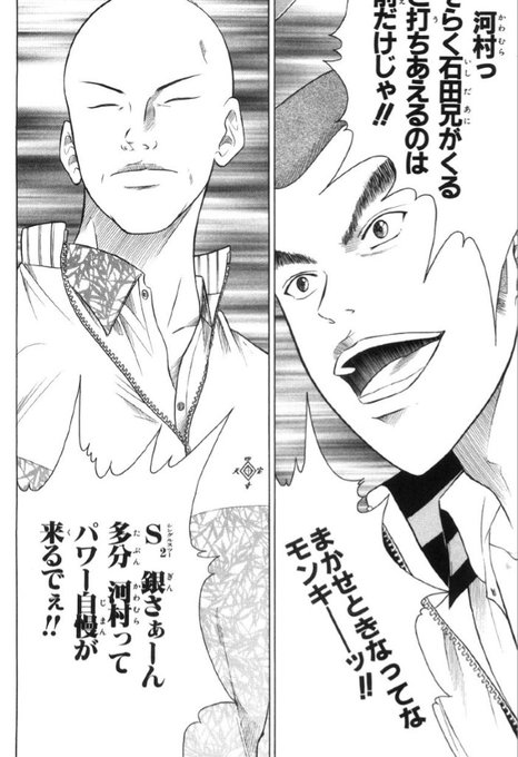 今更ながらテニプリを全巻読んだんだけど銀魂と似てるところがあった。 ていうか普通にテニプリ面白かった。 でもよ桃城といい河村といいさ 血‥流しすぎじゃね?
