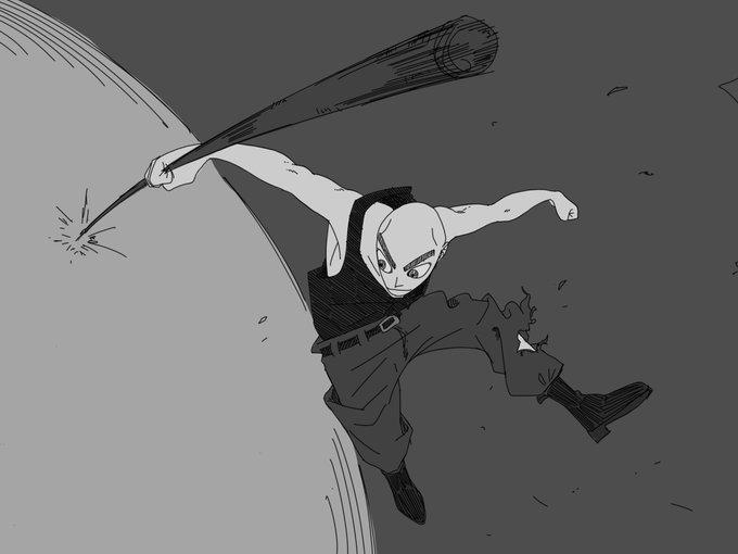 如意棒で宇宙まで行くスキンヘッド