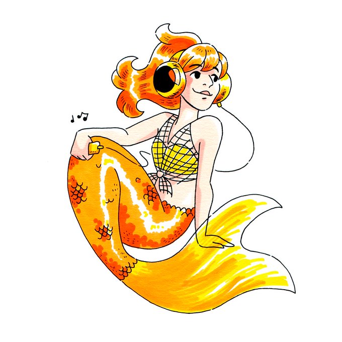 MerMay 3: Pixel art 🟨🟧 I'm not used to making pixel art, I hope the result doesn't look like a MS Paint doodle... 🙈 #mermay2020 #mermaid #goldfish