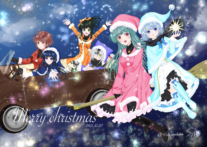 Merry Christmas❤︎ うちの子女子会「空からイルミネーション降らせちゃおう」 #Christmas #オリキャラ #クリスマスイラスト #絵柄が好みって人がいればいいなぁ #絵柄好みって人にフォローされたい ( ଠωଠ)ノメリクリ🎄間に合った!
