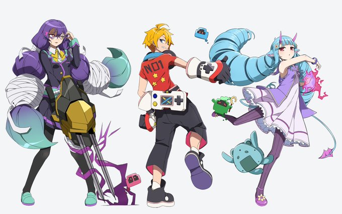 デルミンまでやっと描けたから自分のヘッダー用に推し並べた!満足! アタリくんは少し修正いれたけどね