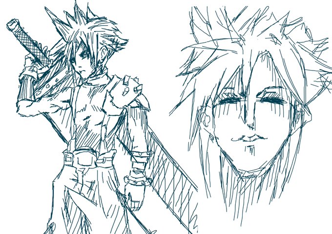 今月のフリープレイで 「FF7R」を購入したから ちょうど去年の今頃に描いた クラウドをリメイクしたのだ~