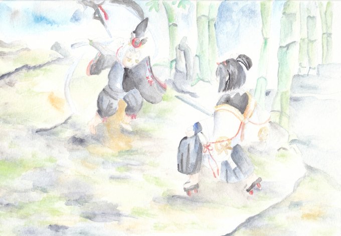 黒童子とこにぎり君です♪たぶん稽古してるんかなあ。黒童子、稽古とかでも本気出しそう