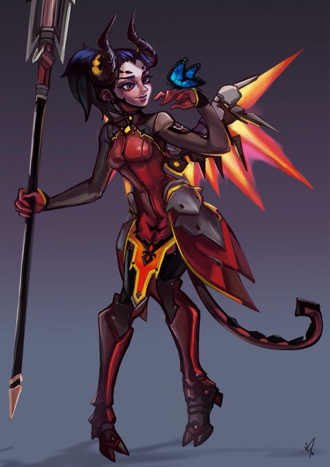 I painted a bit of this on stream and here's the finished piece! It's Mercy from Overwatch in her devil skin.