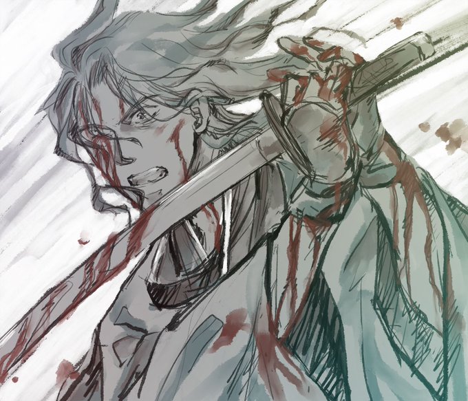 一ちゃんが三臨で戦闘してる漫画が描きたいので練習している(血が邪魔で焼くやつ)