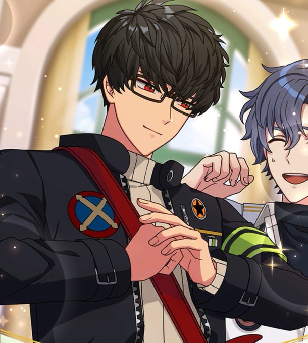 なんだか設定がおかしくなってて?アルユリトップに置いてたらこんな感じになってしまっていたんだけどw いい具合にコンパスロゴが左脚を隠してくれているせいでユリウスが片足だけサンダル履いて浮かれてる人みたいになってた …脛の太さよ……🦵