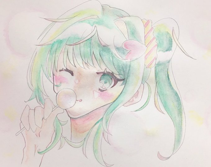 水彩色鉛筆で塗ったモモカ🍭 #ナナピク