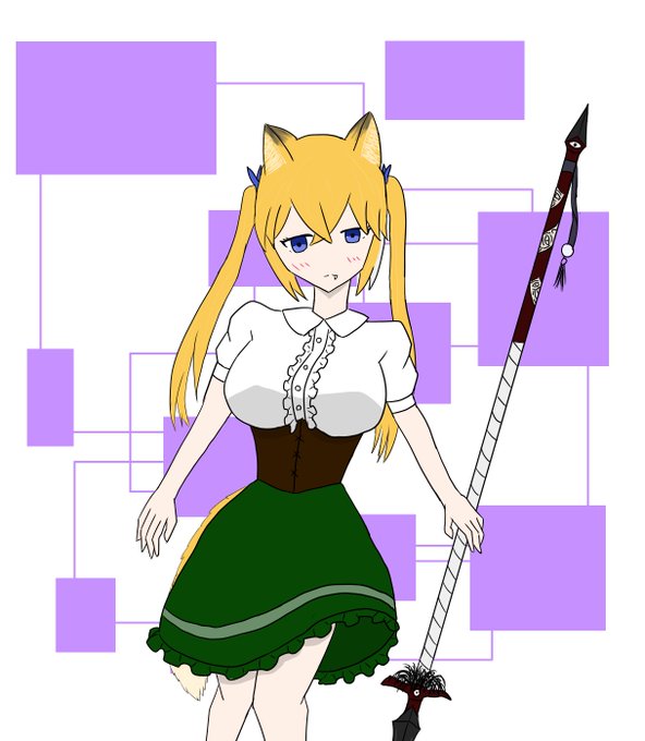 だいぶ前に描いたオリジナル娘のリメイク+武器描きました!!! 名前はきつねみちゃんです!🦊🦊🦊 ぼくが描いたオリ娘の中で、唯一のケモミミ! #オリキャラ