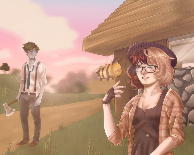 completed commission for @uspiltmyjuice !! i absolutely love the colors in this one, and trying out a new style was a fun challenge!