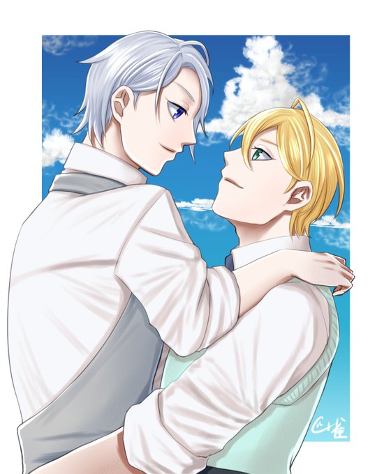 #くにちょぎWeek晩夏2021 くにちょぎオンライン企画「涼風に揺れる金と銀」開催おめでとうございます! お題:『入道雲』『お揃い』 同じ髪型のくにちょぎ😊