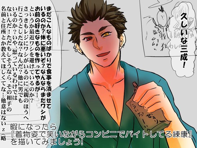 暇になったら 『着物姿で笑いながらコンビニでバイトしてる練康』 を描いてみましょう! http://t.co/8TRRQ1uLiy