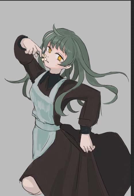 これは絵チャで描いたコレイちゃんと顎の長い執行官
