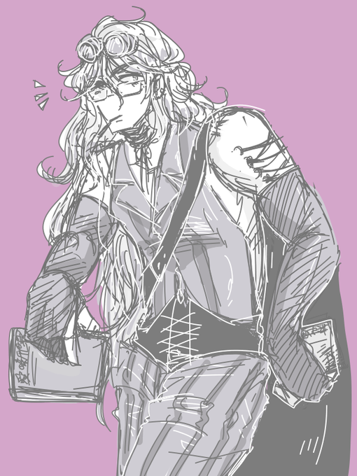 いわしこと瑞岩鷲也くん。 左右非対称ロン毛、スプリットタン、コルセットピアス、メガネ、ゴーグル。地毛と目の色は白にちかい灰色で、髪はきつめの金に染めてる。趣味はああ見えて読書。大学生で専攻は”哲学”。人間の愛欲とタブーに興味深々なお年頃。