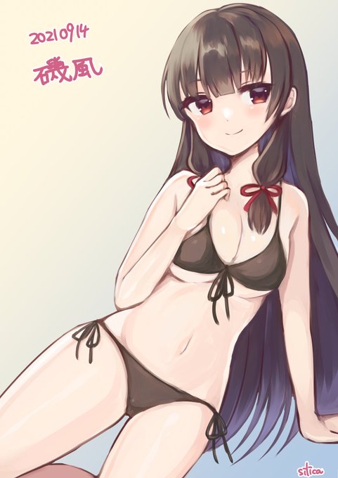 夏終わっちゃったけど黒ビキニ磯風👙 #艦これ版深夜の真剣お絵描き60分一本勝負 #艦これ版真剣お絵描き60分一本勝負_20210914