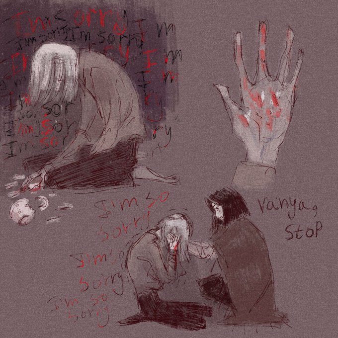 к тому же как занимательный факт!! третья глава основана на фрагменте чуть домысленном и переработанном который запечатлён на моей самой первой картинке по ним!! которую думаю вы уже не помните но я очень давно хотела раскрыть это побольше