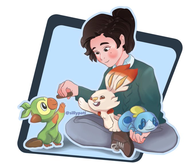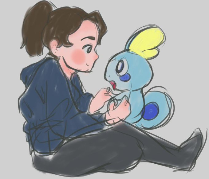 ok so i wanted to draw a quick sketch of my chara with her new starter, its a soft boy so clearly best choice for me #SobbleSquad