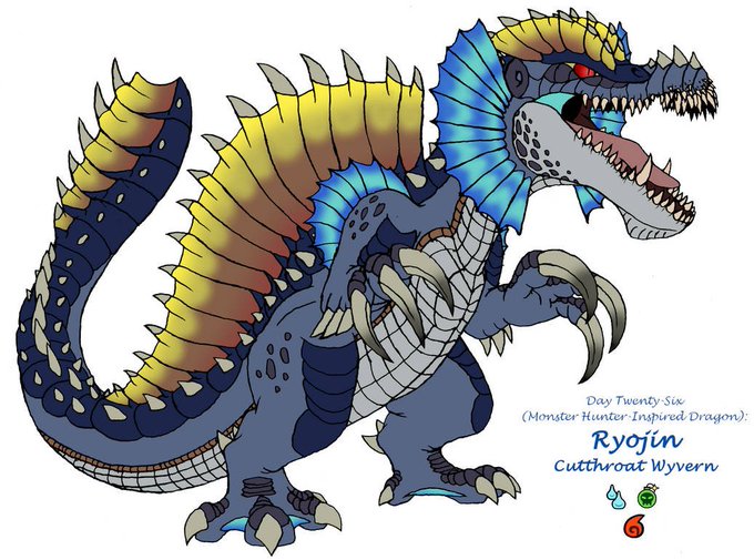 Day 26: #MonsterHunter-Inspired Dragon (retro-Spinosaurus/Dilophosaurus-based Brute Wyvern)