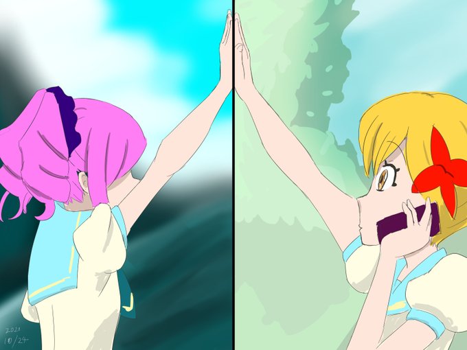 今日の1枚。16話のワンシーンで描きたくなっちゃった #アイカツスターズ #虹野ゆめ #桜庭ローラ