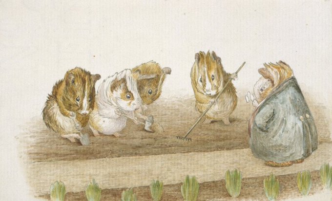 A painting of green-fingered guinea pigs
