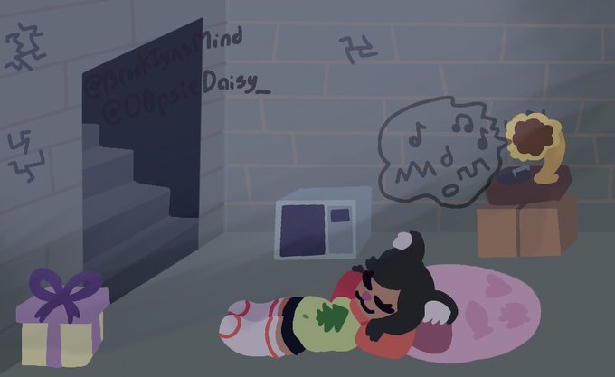 one of my first catgirl ocs! cat was a royal from a german kingdom before being abandoned by mew's mother on a business trip when purr was like 1 y/o. mew was found by tyria years later and now lives in the basement of bug's pizzeria. purr likes christmas