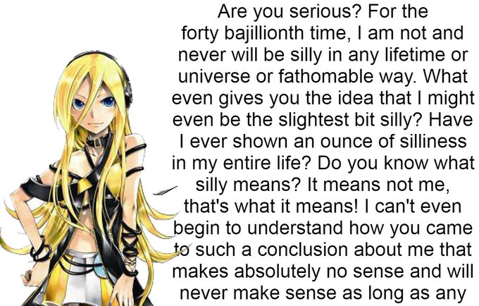 Different vocaloids react to you calling them silly