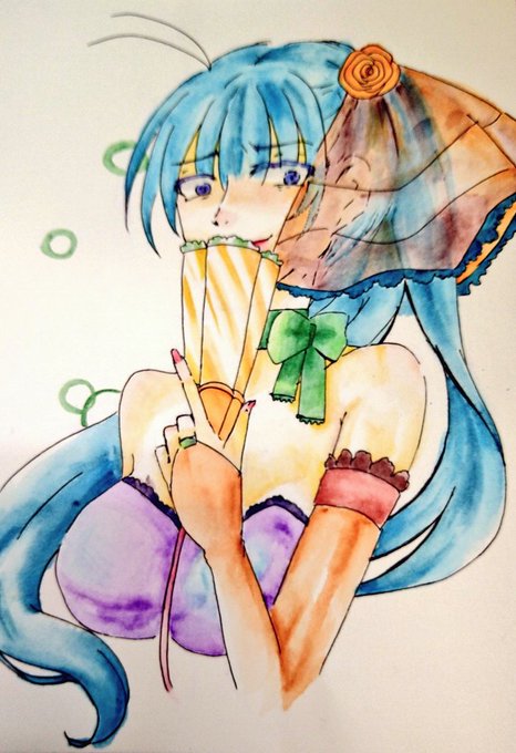 #このタグを見た人は自分の絵柄の髪部分を見せる 全く関係ない色突っ込むの好きです。水彩色鉛筆の一色濃淡頑張ったのであるよ。
