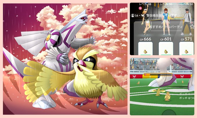16人でポッポ戦隊でパルキア討伐したー❗ RTの動画見てくれ!記念イラスト描いた。皆さん共闘ありがとうございました。スゲー楽しかったあああ🔥 #ヒーリングバード #ポケモンイラスト