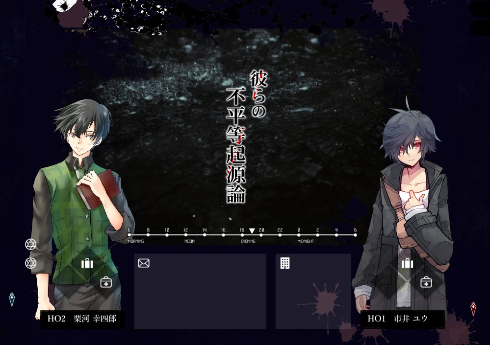 【彼らの不平等起源論】君らの目的は違っている。 HO1:大学生 HO2:探偵 自作シナリオ。大学生:市井ユウ(KPL)、探偵:栗河幸四郎(せーちゃん)でとても楽しくできた思い出。オンセで8時間くらい。