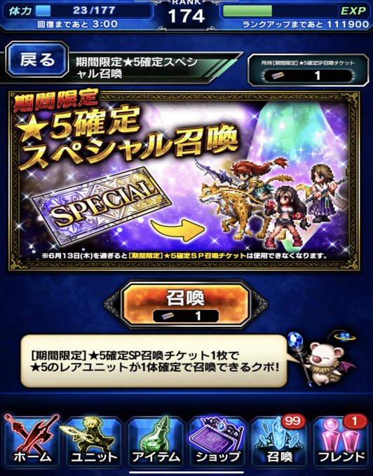 こんばんは! Good evening ☆ ⭐️5確定召喚チケはカブラス様でしたクポ(=^○^=) #FFBE