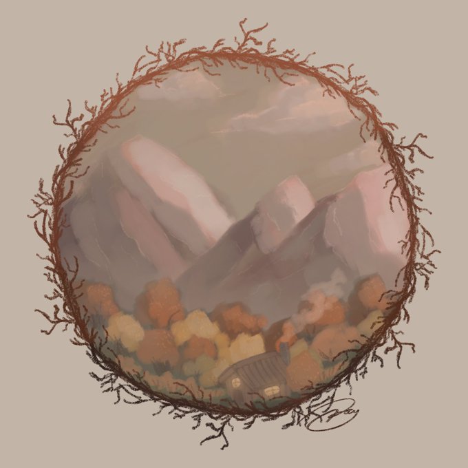 Here's a nice little mountain scene 🧡🏔🍂 #smallartist #landscapepainting #digitalart