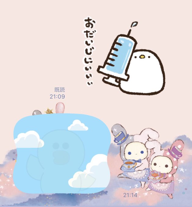 青空をバッグに手を振りながら消えていくヒヨコスタンプ返されて、