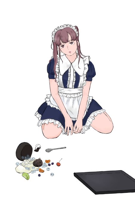 クリームあんみつを完全にぶちまけてしまうメイドさん……