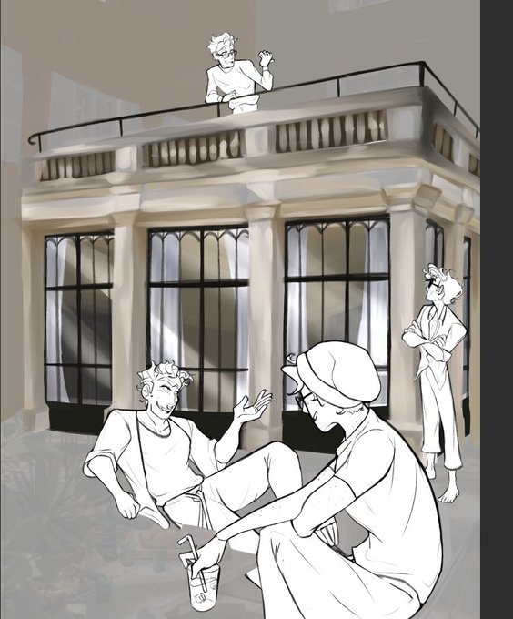 God drawing backgrounds are hard to do but I wanted to try something different in my art. So have some of the Anthanas brothers chatting some afternoon.