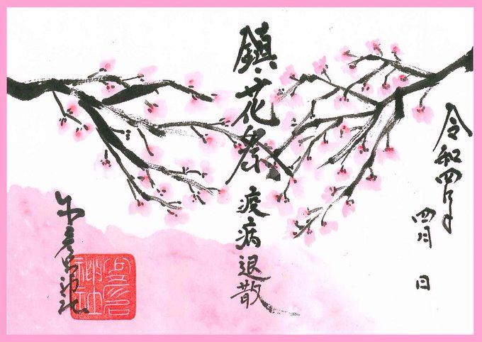 本日授与の鎮花祭限定御朱印の数量が少なくなって参りました。 ご入用の方は早めにご参拝下さい。各御朱印は本日限りとなっております。 #少彦名神社 #鎮花祭 #御朱印