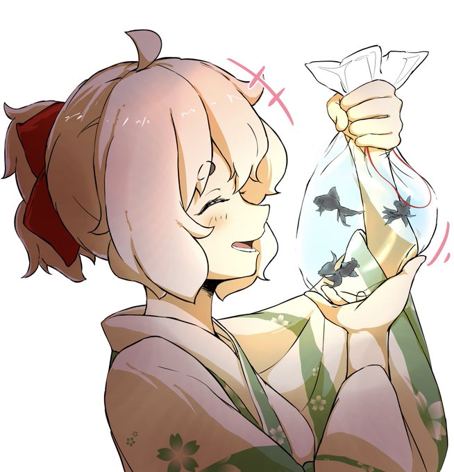 金魚すくいができてご満悦のすずしろちゃん👘🎇 ちなみに好きな種類は出目金みたいです✨ #道草屋 #イラスト