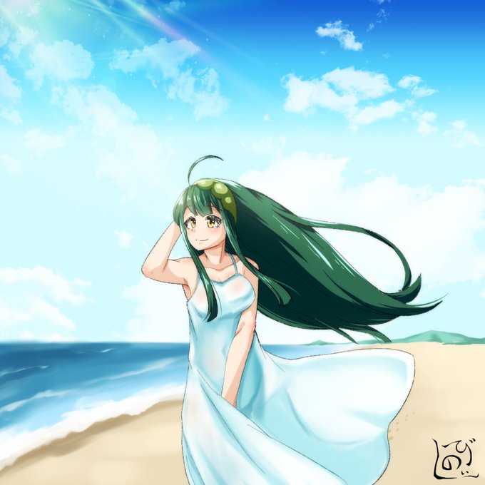 #東北ずん子深夜の真剣お絵描き60分一本勝負 お題:波 波打ち際の美少女( ˘ω˘ )