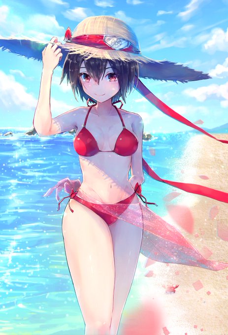 「ログアウトブレイバース」著者 阿古しのぶさん (@akoshinobu)の夏イラスト描かせていただきました! 水着サイカちゃんカワイイです