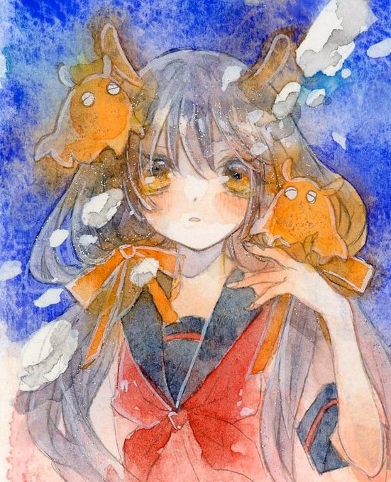 シャーペンのほうが水彩の淡い雰囲気に合う気がする…というのは建前で、本当はつけペンやコピックマルチライナーでペン入れするのがめんどくさくて線画の工程を一個省きたかったからです…w