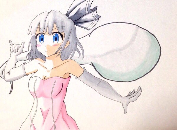 壁にはまって抜けなくなった星輝子ちゃんを描きました