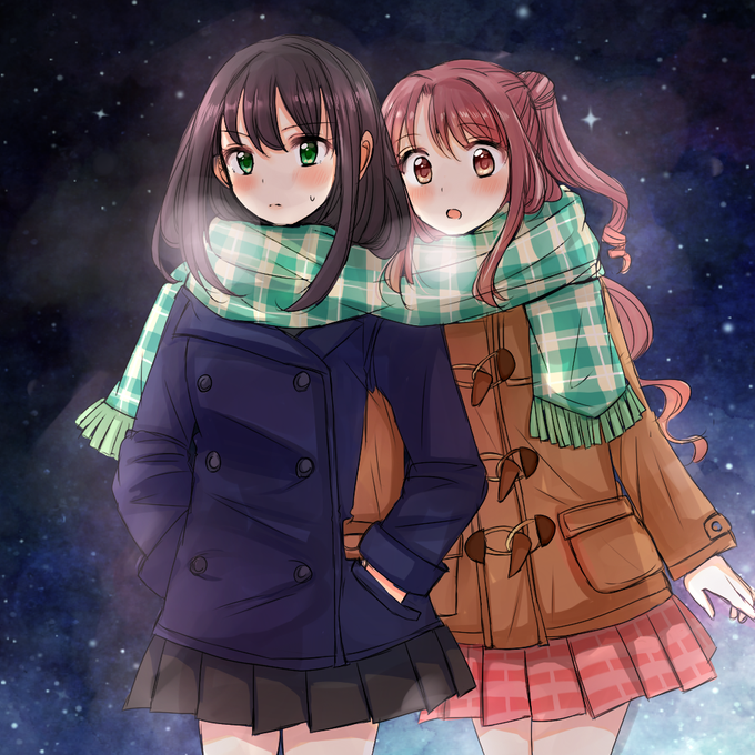 「今日は寒いからね」って言い訳してマフラーを一緒に巻いたり卯月の手を自分のポケットに突っ込んで隠れて手を繋ぐ冬のうづりん #うづりん強化週間