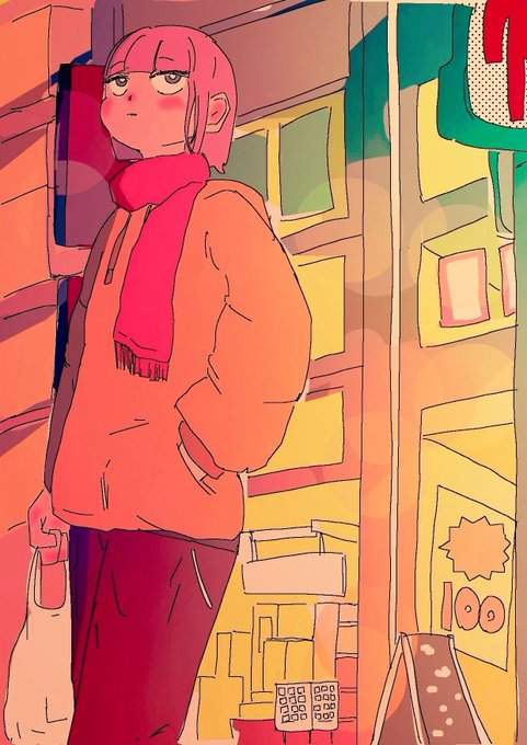夕暮れ時、コンビニ帰り。 #イラスト #イラスト好きさんと繋がりたい #イラスト練習中